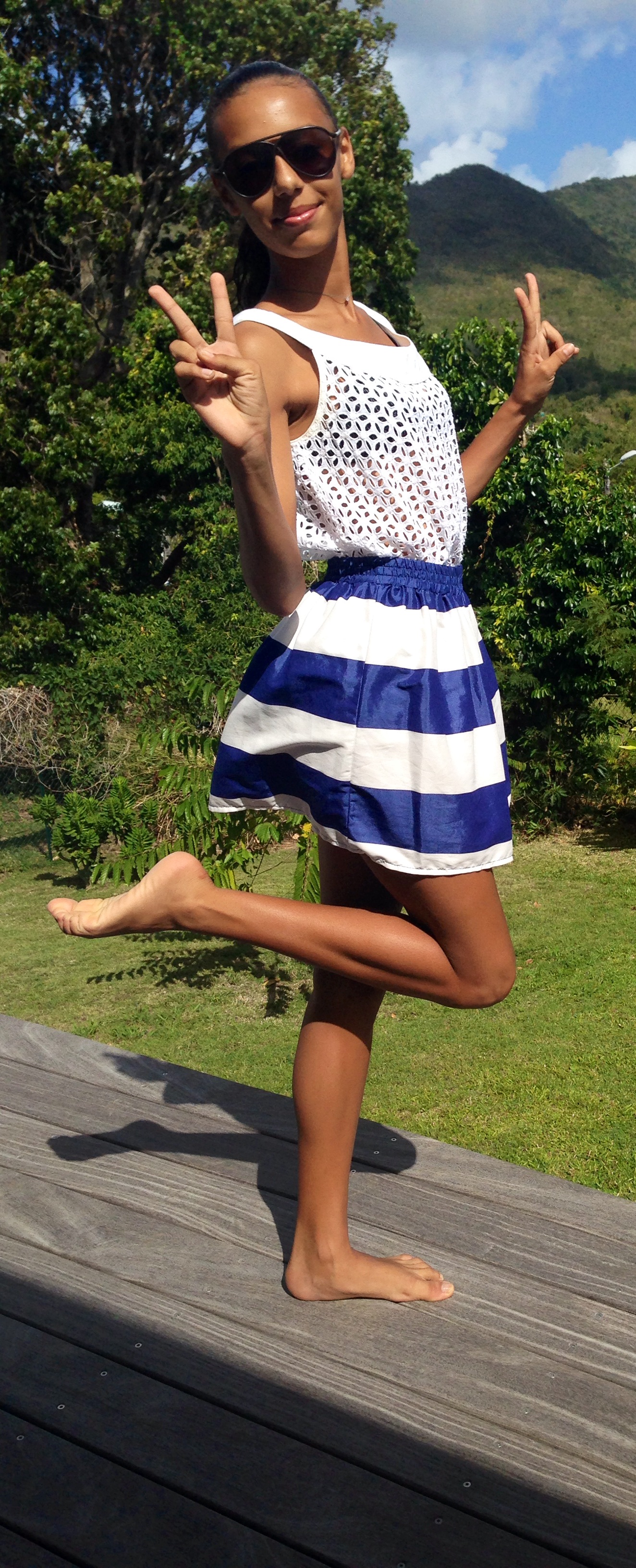 Today , I wanted to wear a skirt and an outfit a little bit original . I think it looks like a sweetie blue candy with coral lips, a little softness for this week-end. I hope you’ll enjoy ! 🙂